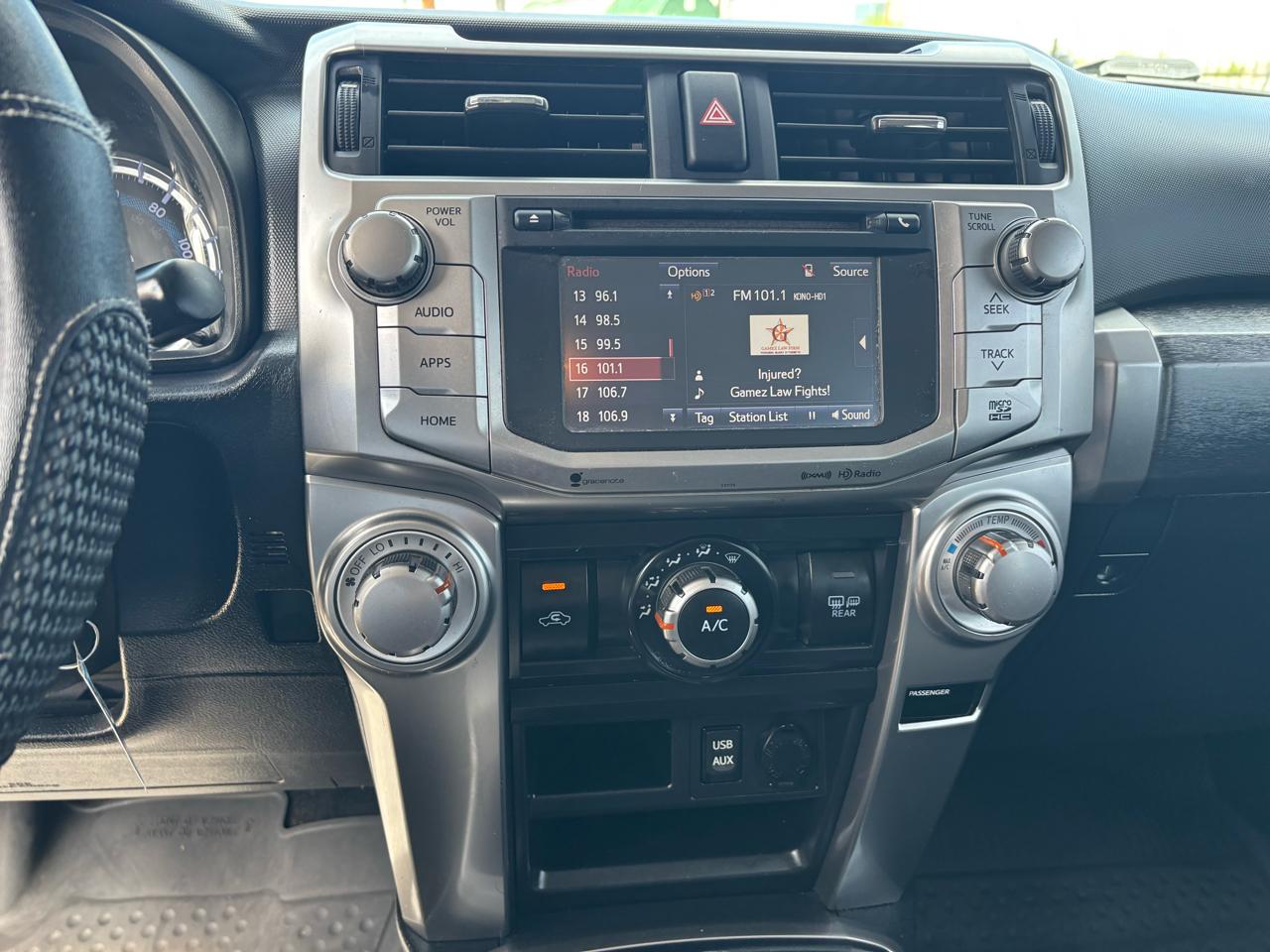 Get ready for an adventure in this sleek Black 2016 Toyota 4Runner! With its rugged exterior and sporty alloy wheels, this 4Runner is ready to hit the road in style. Equipped with top-notch safety features like ABS brakes, traction control, and multiple airbags, you can drive with peace of mind knowing you and your loved ones are protected. The interior features a comfortable leather steering wheel with mounted controls for easy access, while the adjustable foot pedals and telescopic steering column ensure a personalized driving experience. Cruise control and a trip computer make long drives a breeze, while the navigation aid and voice-activated telephone keep you connected on the go. Whether you're heading off-road or running errands in the city, this 4Runner is the perfect companion. And the best part? A Carfax report is available, so you can purchase with confidence knowing the car's history. Don't miss out on this amazing opportunity to own a reliable and stylish SUV that's loaded with all the features you need for your next journey!