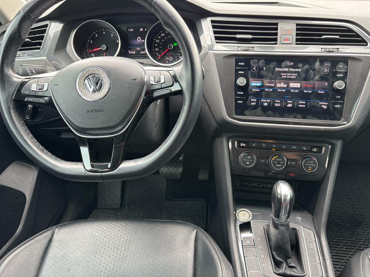 Take a joyride in this sleek 2019 Volkswagen Tiguan, where comfort and style meet functionality! Slip into the luxurious leatherette seats and enjoy the warmth of the heated driver and passenger seats as you glide through any weather with the dual A/C zones and automatic climate control. This Tiguan ensures your safety with features like blind spot sensor alert and stability control, giving you peace of mind on the road. The touch screen audio system with SiriusXM Equipped keeps you entertained while the backup camera makes parking a breeze. With a push-button start, moonroof/sunroof, and remote proximity entry system, every drive is a delight. This Tiguan is not just fun and games, as it is equipped with an efficient regenerative braking system and trailer stability control for your convenience. Plus, imagine the power locks, remote trunk release, and 12v power outlets making your life easier. Complete with a Carfax report, this Tiguan is ready to hit the road with you for new adventures!